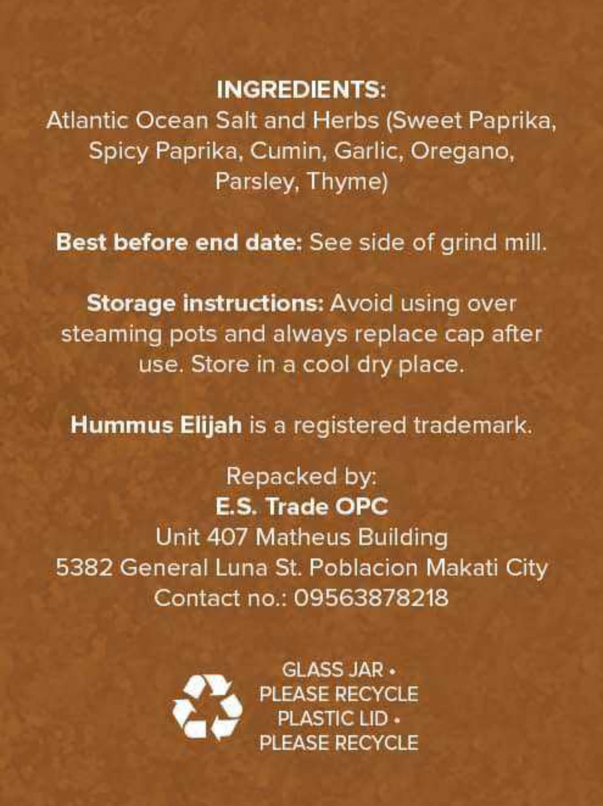 Atlantic Ocean Salt, Herbs & Spices: Sweet Paprika, Spicy Paprika, Cumin, Garlic, Oregano, Parsley, Thyme